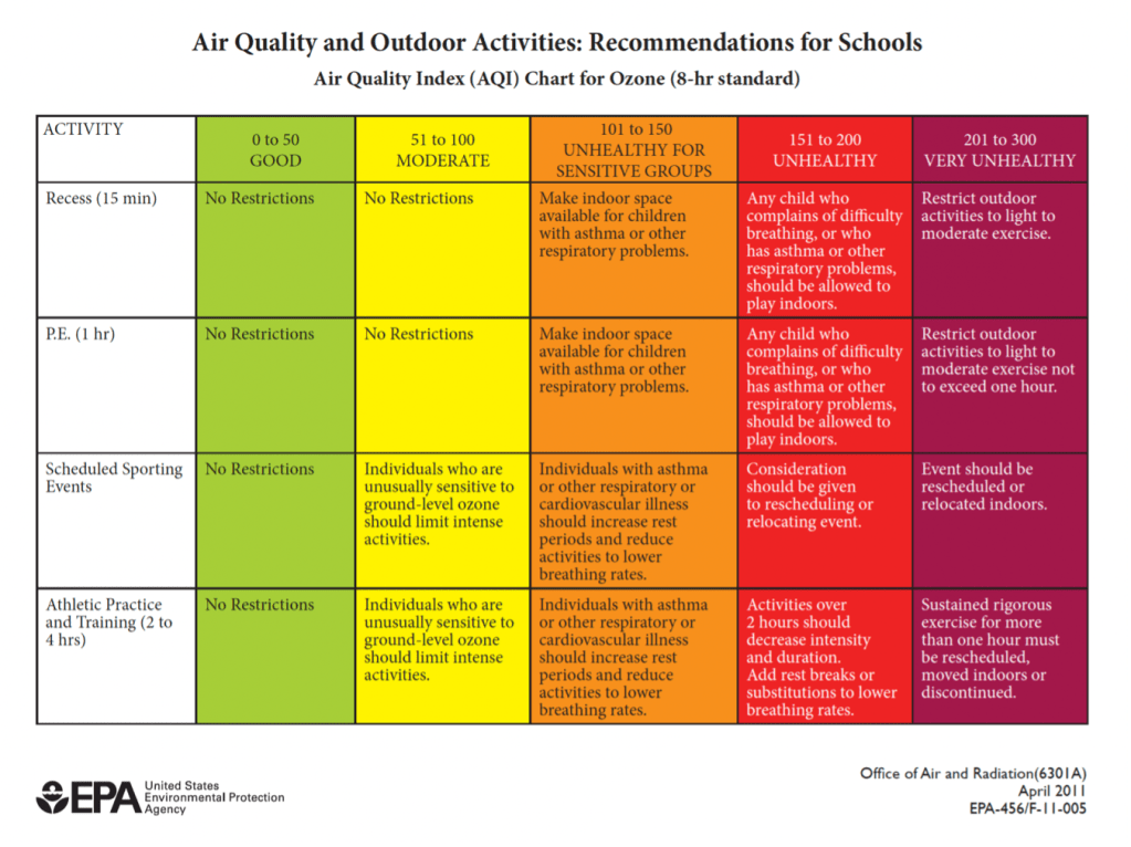 Outdoor activities will be modified or postponed when are above normal safe operating limits. The AQI reading from this website http://aqicn.org/city/shenzhen/ will be used to make the determination.