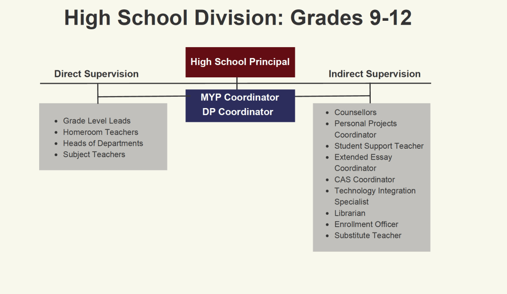 The second point of contact, if the Team Lead or Department Head is not be able to provide the information or resolve the issue, is the relevant IB Coordinator. The Coordinator is the main point of contact for curricular and IB issues.