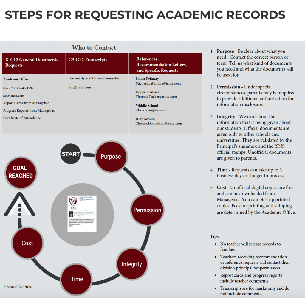 It is important that we follow a procedure which upholds the integrity of the school when releasing official school documents.